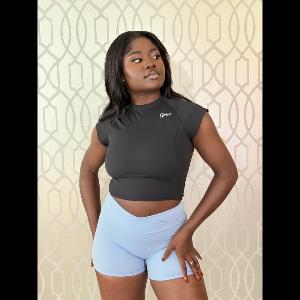 β’ Style: Short-sleeve crew neck stretch top. β’ Design: Minimalist with a small white βGirlesβ logo printed on the mid-chest area. β’ Fit: Regular fit with slight stretch, featuring side ruching at the hem for added shape and flexibility β making this stretch top both flattering and functional. β’ Fabric: Made from a blend of 65% polyester, 30% cotton, and 5% spandex, giving this stretch top a lightweight, breathable, soft, and slightly stretchy texture. Pair this stretch top with our wide leg comfort pants for an effortlessly stylish and endlessly comfortable look. The set is perfect for lounging, travel, or casual outings β a modern essential for your everyday wardrobe.