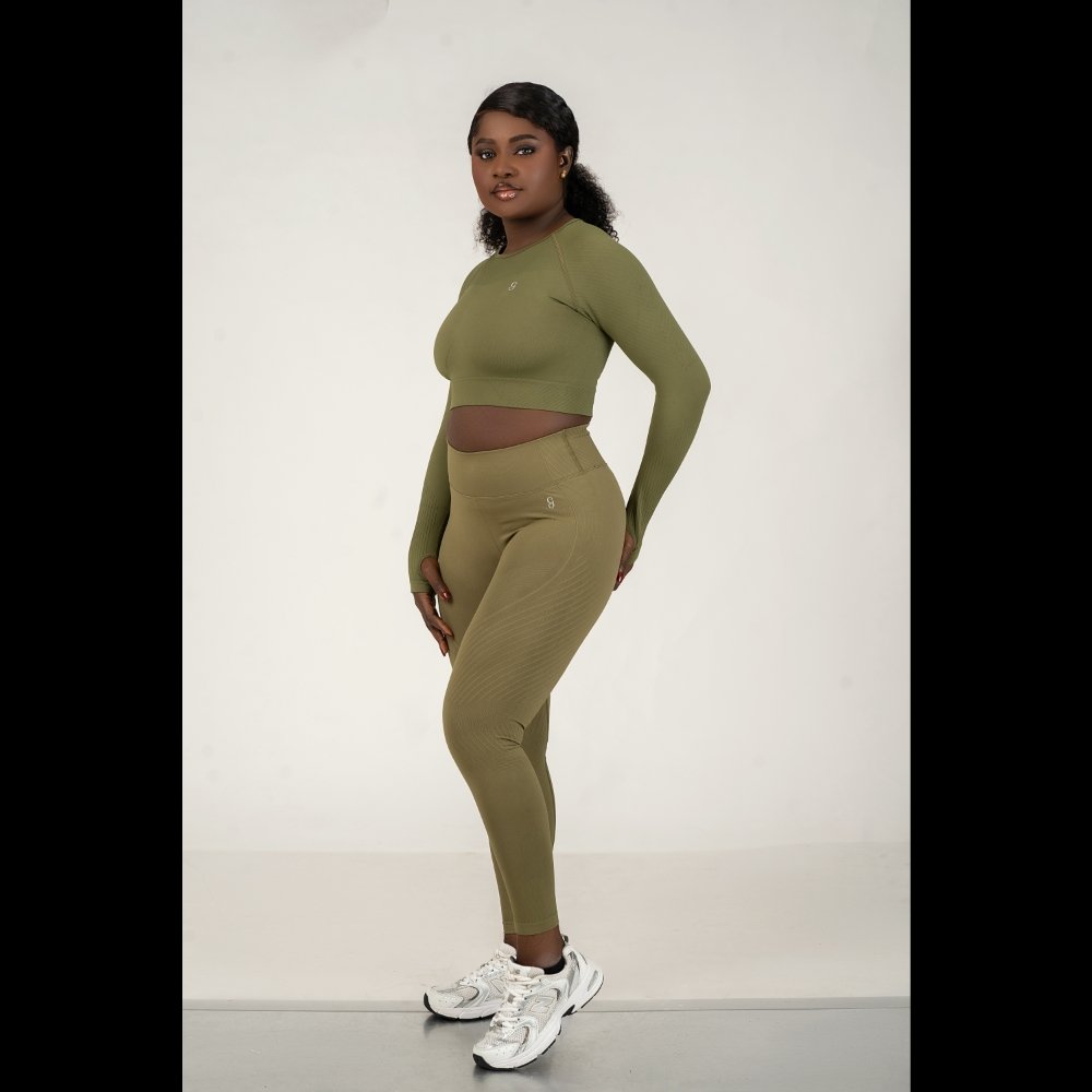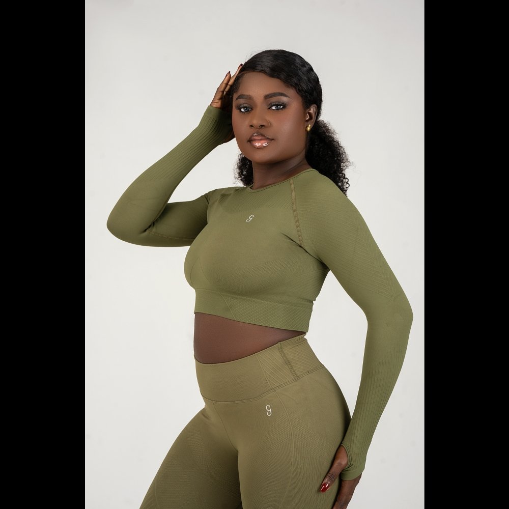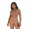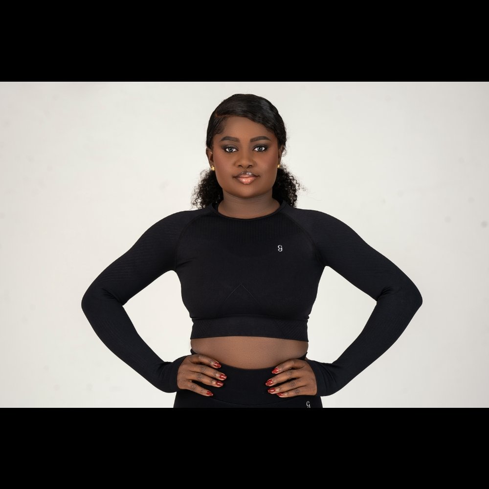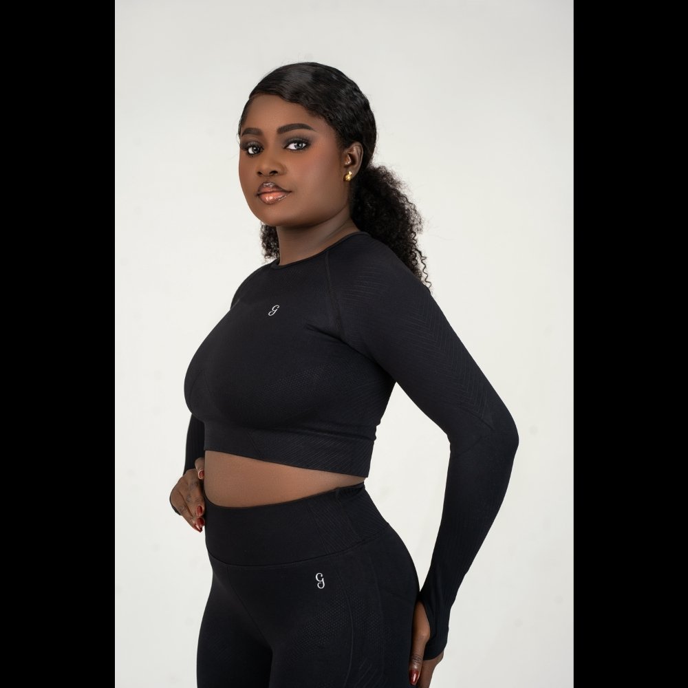 Refined and functional, the Élan seamless long sleeve crop top is designed to contour the body with a sleek, second-skin fit. Crafted from a soft, breathable blend of 90% nylon and 10% spandex, this seamless long sleeve crop top features a high-stretch, seamless construction that minimizes distractions and enhances comfort. Ribbed detailing through the sleeves and under the bust subtly shapes and supports, while the cropped length flatters the waistline—perfectly balancing form and freedom of movement.